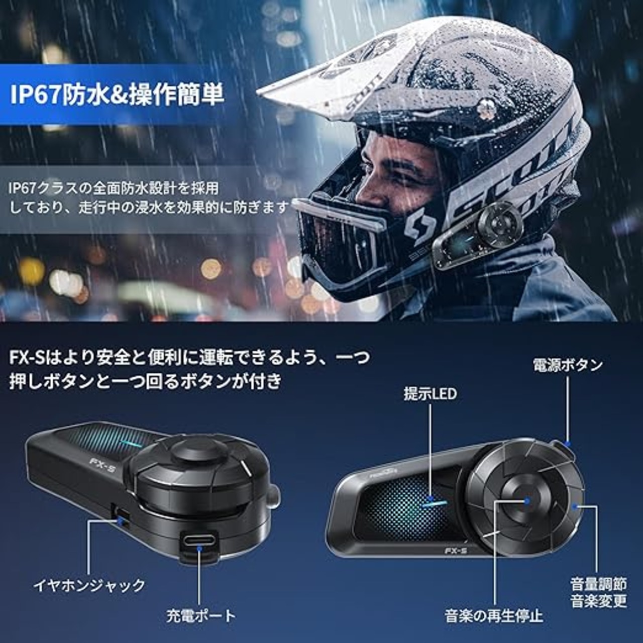 FODSPORTS バイク インカム FX-S インカム Bluetooth5.4 充電ながら使用 2人同時通話 インカムバイク用 通信機器 最大通話距離1000M 40mmヘルメットスピーカー 通信自動復帰 HIFI音質 バイク用無線機 いんかむ 他社インカム接続可能 インターコム ヘッドセット IP67防水 音声コマンド Siri対応 Type-C充電 技適認証済み 日本語説明書 (1台) a | CarsBikes
