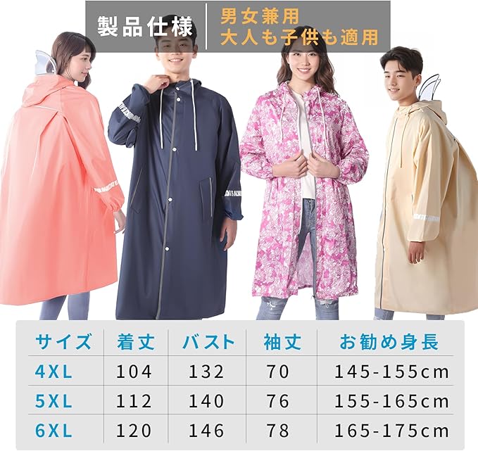 [三和雨] レインコート メンズ レディース 自転車 子供 リュック対応 【防水軽量・二重つば・収納・反射テープ】 レインポンチョ 雨合羽 通学 通勤 梅雨対策 収納袋付 男女兼用 c | CarsBikes