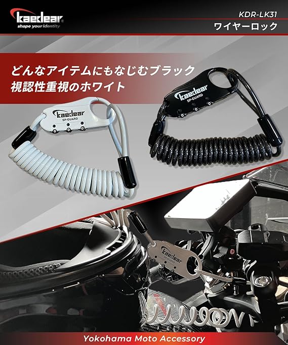 Kaedear(カエディア) バイク ワイヤーロック コンパクト ダイヤルロック 鍵 盗難防止 ヘルメット シートバック 4mm カールコード 1500mm 形状記憶 SP_GUARD Type-wire KDR-LK31 (レッド, 4mm) a | CarsBikes