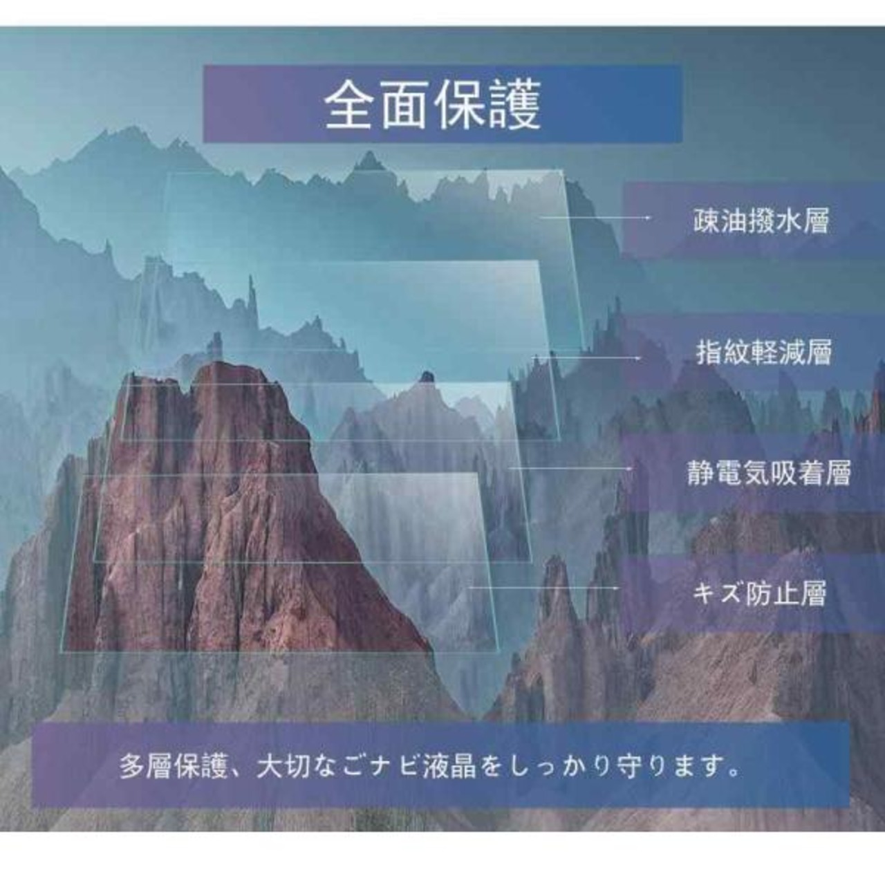 高透過率:透過率が高くて、ナビ液晶画面がクリアで見やすくなります。 装着していることも忘れてしまうほどカーナビを しっかりと守ってくれます。また、優れた疎油性と撥水性があり、表面に汚れが付きにくく、常にナビ画面の綺麗さを 保っています。