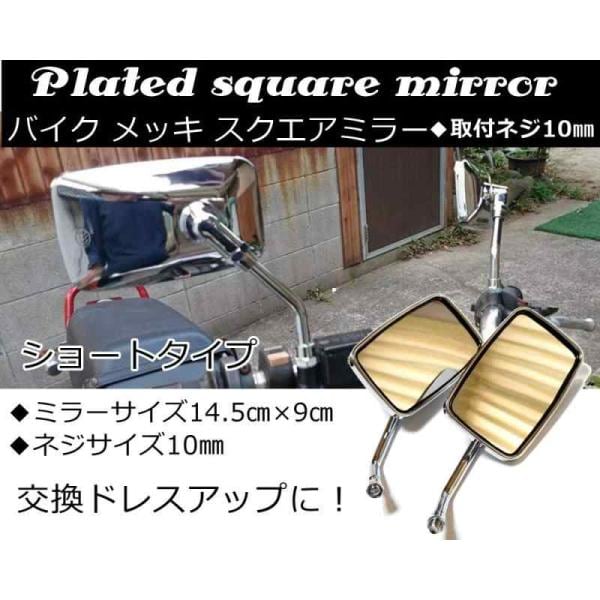 バイクミラー 左右セット メッキ スクエアー ミラー ショート M10mm 左右セット ミラー 汎用 タイプ CB400SF PCX 銀 シルバー メッキタイプ