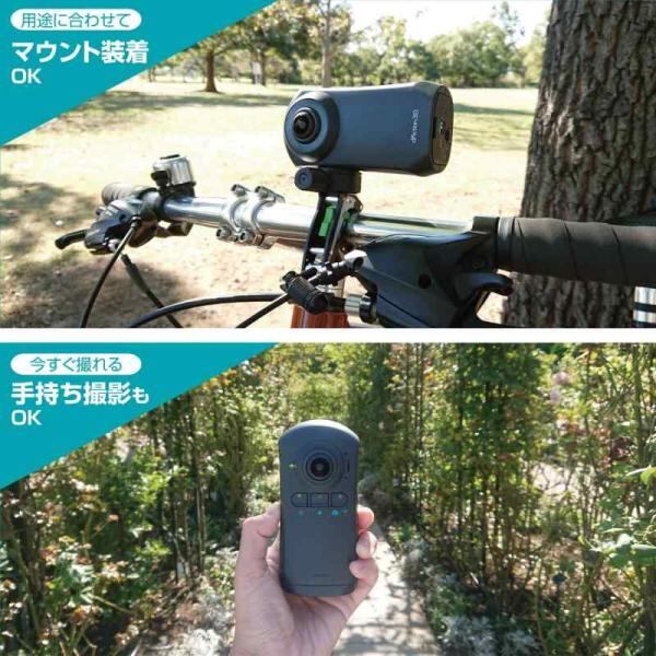 カメラをマウントから取外して、バッテリーパックを付ければ車外で360°撮影を楽しめまる