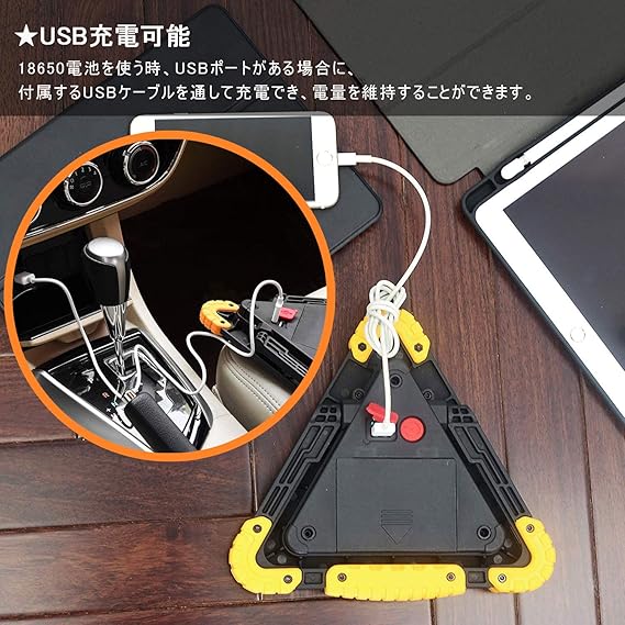 日本語説明書!三角停止板・Cyrmiug 自動車安全緊急対応 故障標識 三角停止表示板、180度調整 USB充電式 折り畳み式 緊急駐車時の必需品 車警告灯 、道路用 事故用 応急処置 停電・防災対策 登山・夜釣り・夜間作業・車の修理用 昼夜間兼用型 追突事故防止 18650電池2枚付き1 | CarsBikes